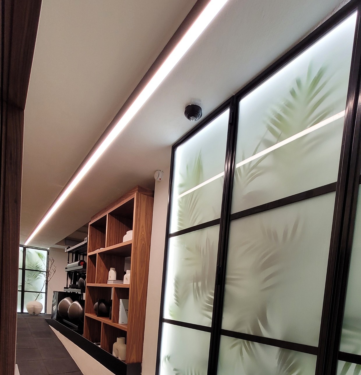 Luminaire fabriqué sur-mesure, optez pour un luminaire individuel ou pour de la ligne continue, choisissez les dimensions, la puissance, les couleurs du luminaire parmi toute la palette RAL classique sans minimum de quantité et sans surcout.
