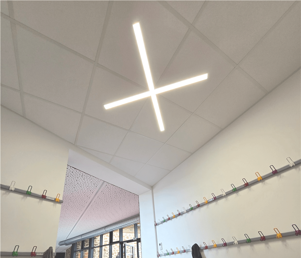 Installation en saillie, en encastré ou en suspension. Luminaire en croix, en carré, en L sans coupure de flux lumineux.